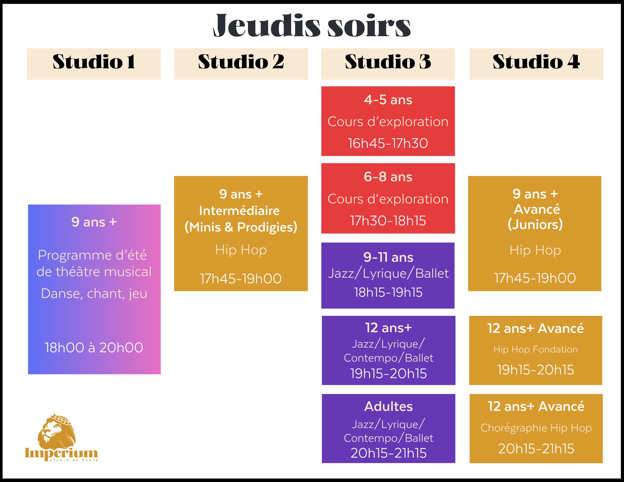 Par Ralph Di Iorio / juin 21, 2022 Cours de danse d’été Vous pouvez dès maintenant vous inscrire à nos cours de danse d’été proposés en soirée du 3 juillet au 19 août 2026. Il y en aura pour tous les âges, tous les styles et tous les niveaux. Au plaisir de vous y voir! Inscrivez-vous dès aujourd'hui Inscriptions Le meilleur moment pour découvrir différents styles de danse!